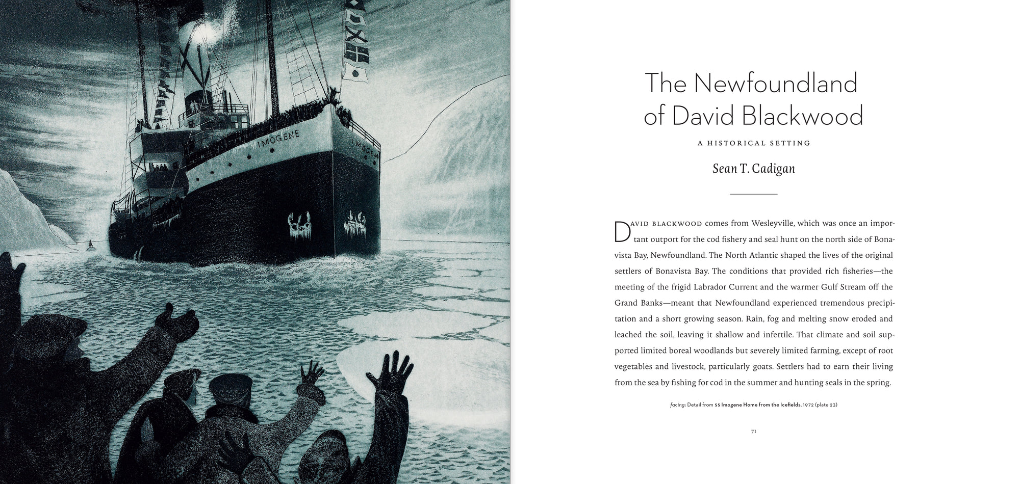 Now, the volume that brought together these narratives — and accompanied Blackwood's 2011 exhibition organized by the Art Gallery of Ontario — is back in print. The lavishly illustrated Black Ice features over seventy reproductions of Blackwood’s Newfoundland prints, in addition to contextual essays by artists, scholars, and curators from Canada and Ireland, including Sean Cadigan, Michael Crummey, Gary Michael Dault, and Caoimhe Ní Shúilleabháin. Together, they place his work within the changing social context of twentieth-century Newfoundland.
