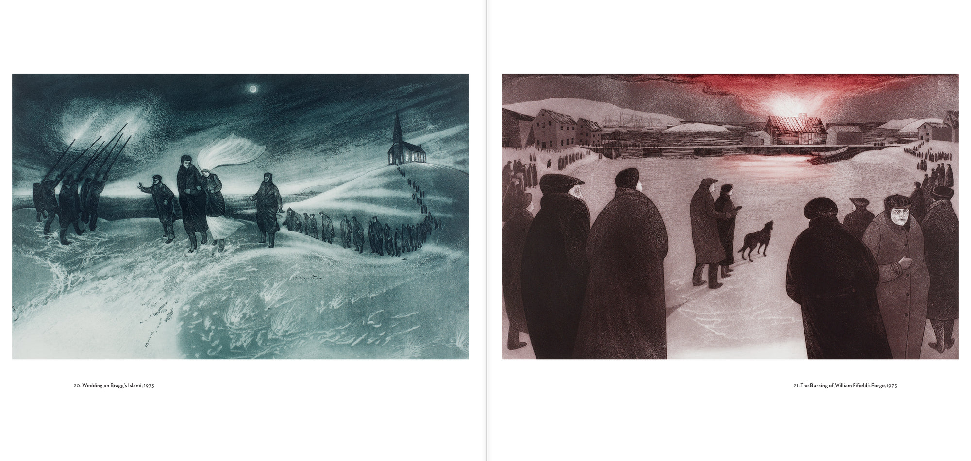 David Blackwood was engaged in telling stories about Newfoundland through his epic visual narratives for most of his career. Drawing on childhood memories, dreams, superstitions, oral tradition, and the political realities of the place where he was born and raised, he created an iconography of Newfoundland as universal as it is personal, as mythic as it is rooted in reality, as timeless as it is linked to specific events.