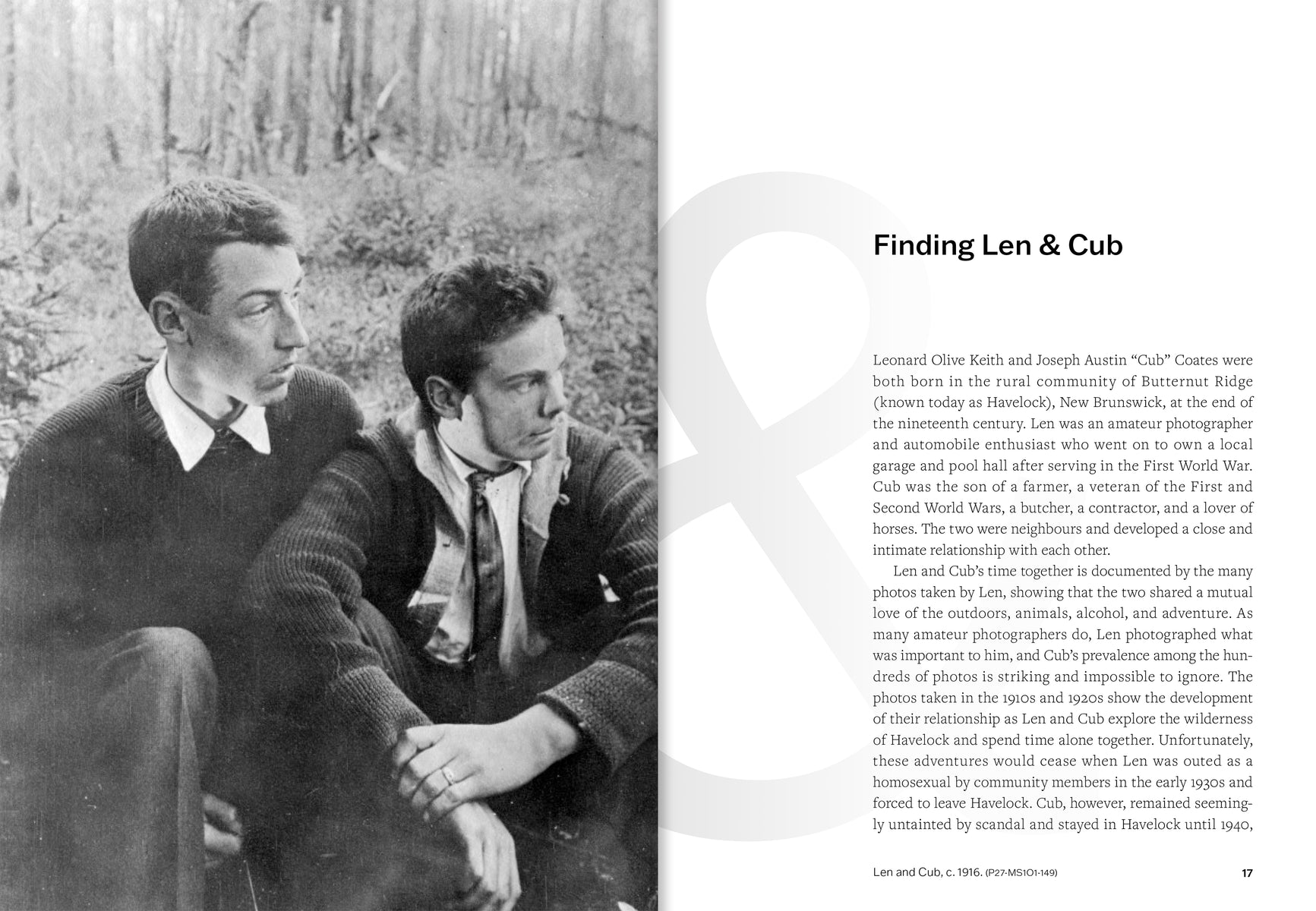 “The photos alone make this book a must-have for those interested in uncovering the queer histories of rural New Brunswick. The affectionate photos of Len and Cub together convey the essence of a relationship never recognized during their lifetimes. An important contribution to Canadian queer historiography.” — Ed Jackson, co-editor of Any Other Way: How Toronto Got Queer