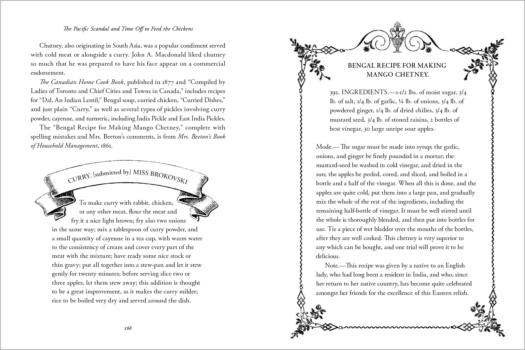 "Mechefske's book is an often tongue-in-cheek romp through the life of Sir John A., and the food he consumed, from his voyage, at age five, on an immigrant ship to Canada (mouldy bread and watery horsemeat stew) to fancy state dinners during his long political career (champagne and oysters were essential)." — National Review