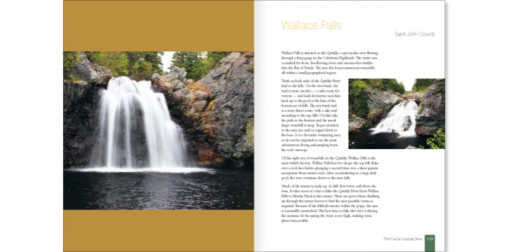 Guitard's photographs are composed with an eye to the diversity and particular beauty and geological situation of each watercourse. A map locates each waterfall. Spanning all five regions of New Brunswick (Acadian Coastal, Appalachian Range, River Valley Scenic, Fundy Coastal, and Miramichi River), there's something for everyone — you may even want to strap on your backpack and head out to experience them yourself.